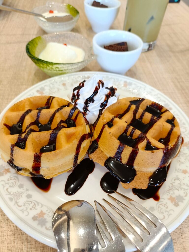 セルフで作るワッフルは、大人でもワクワク作れてふわふわで美味しい🧇