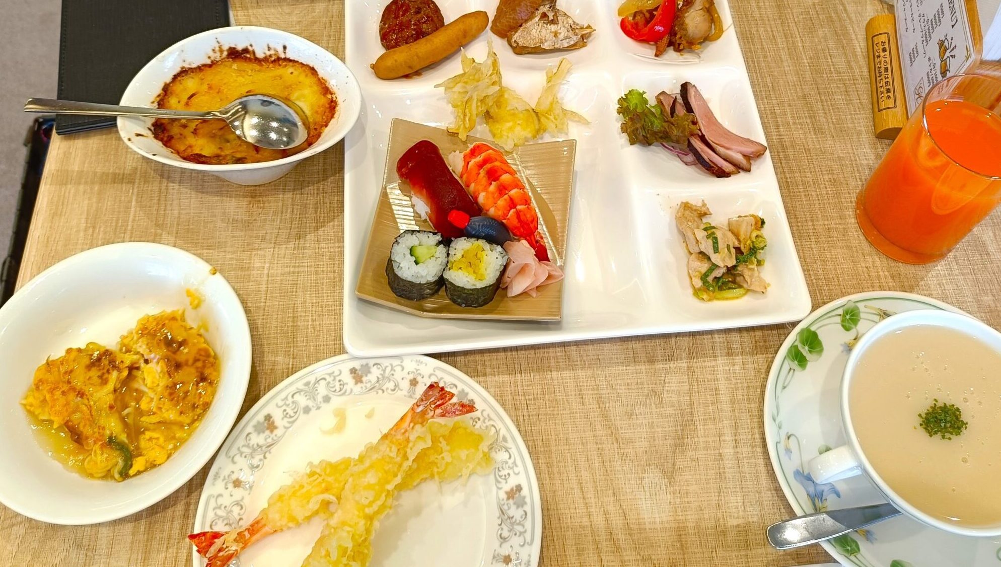 和食と洋食、どちらも楽しめるハーフビュッフェ形式で、家族から大人ひとりまで、誰もが満足できるランチがここにあります。